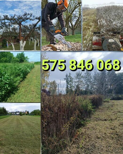 Wycinka drzew za pomocą podnośnika zwyżki ++Koszenie mulczowanie karczowanie kosiarką bijakową Działek zachwaszczonych ...